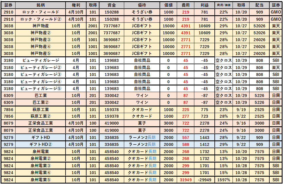 以上、2025年10月優待クロス「取得結果」を紹介しました。