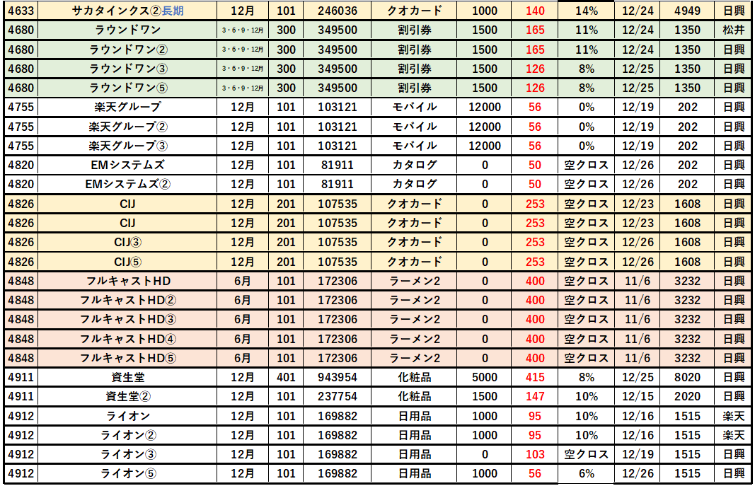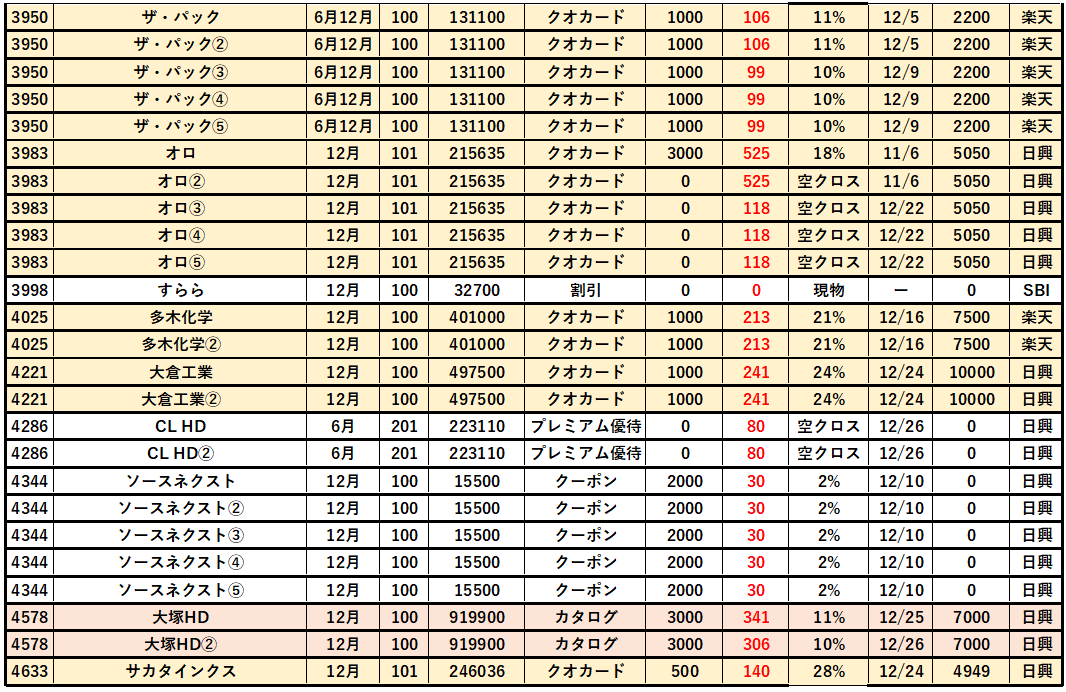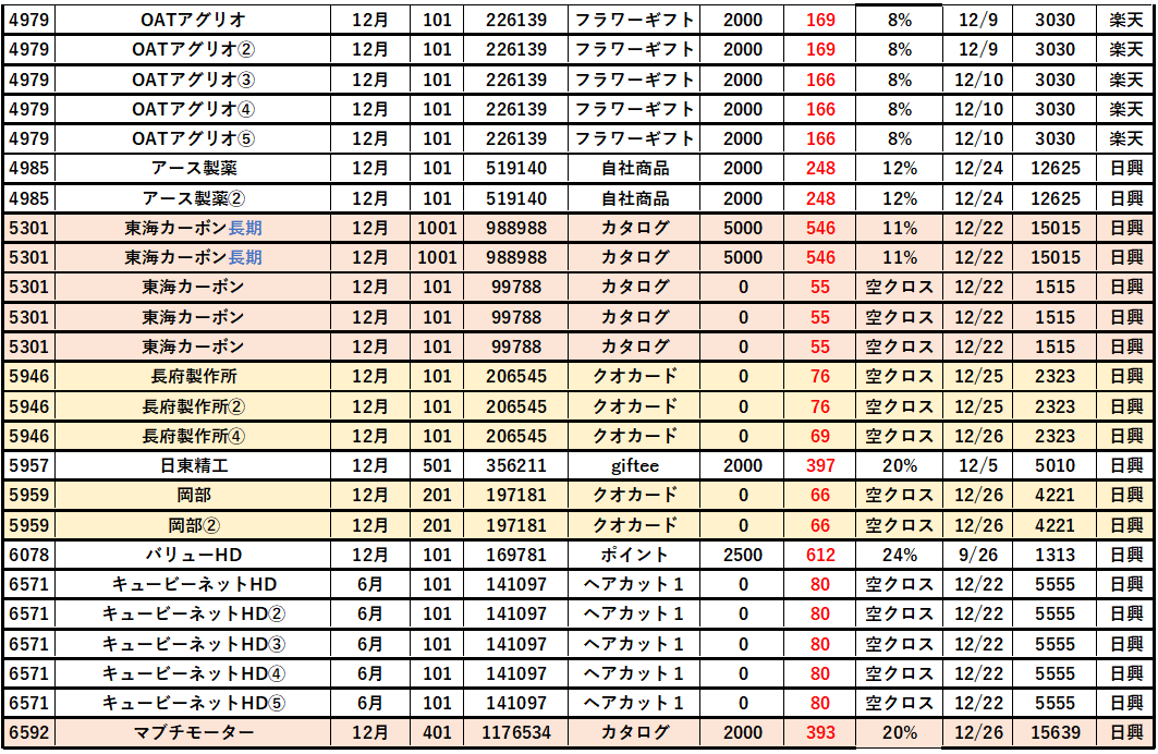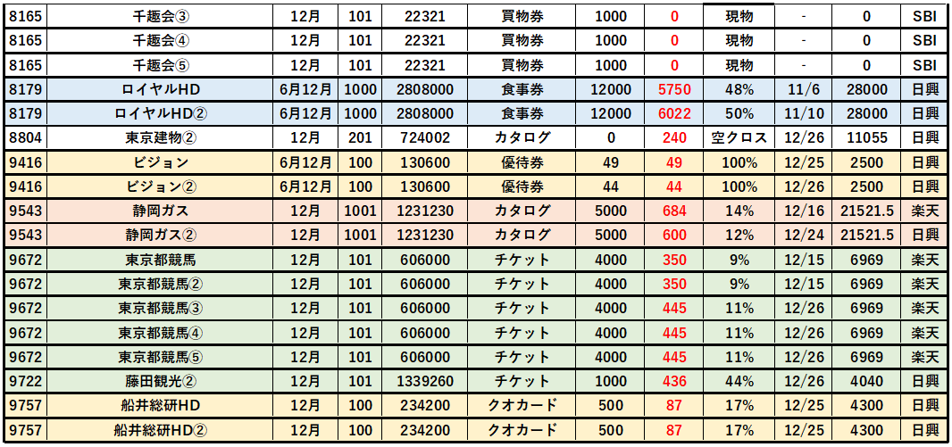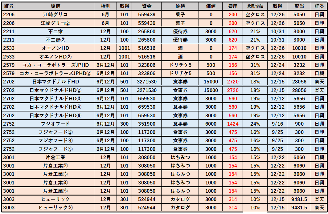 以上、2025年12月優待クロス「取得結果」を紹介しました。
