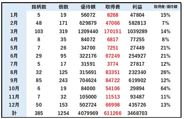 | 取得 | 優待額 | 取得費 | 利益 | |